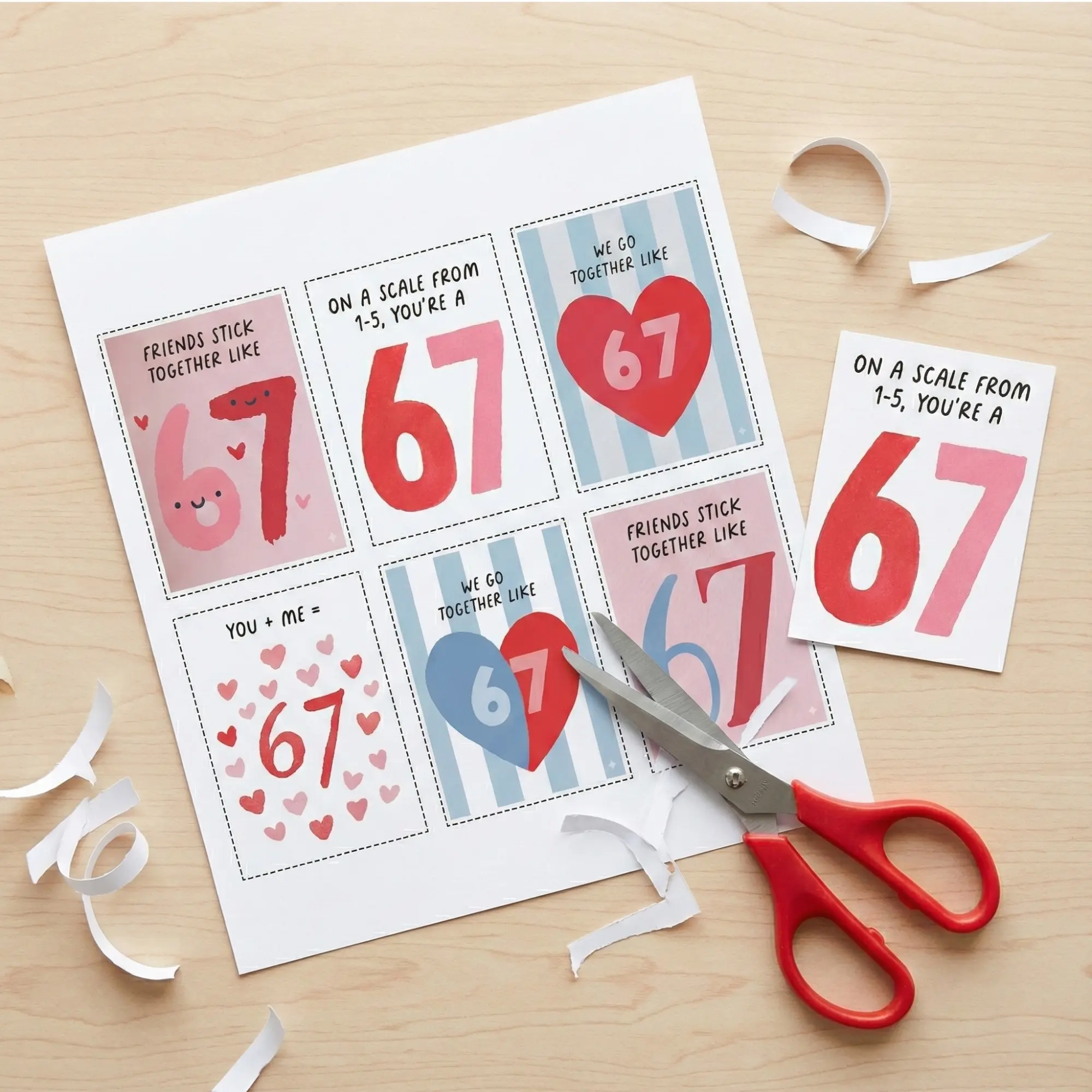 Featuring the viral On a scale from 1-5, you’re a 67 humor, these cards are guaranteed to get a laugh from classmates and friends. They are the perfect last-minute solution for busy parents—just buy, print at home, and you’re ready for the school party!