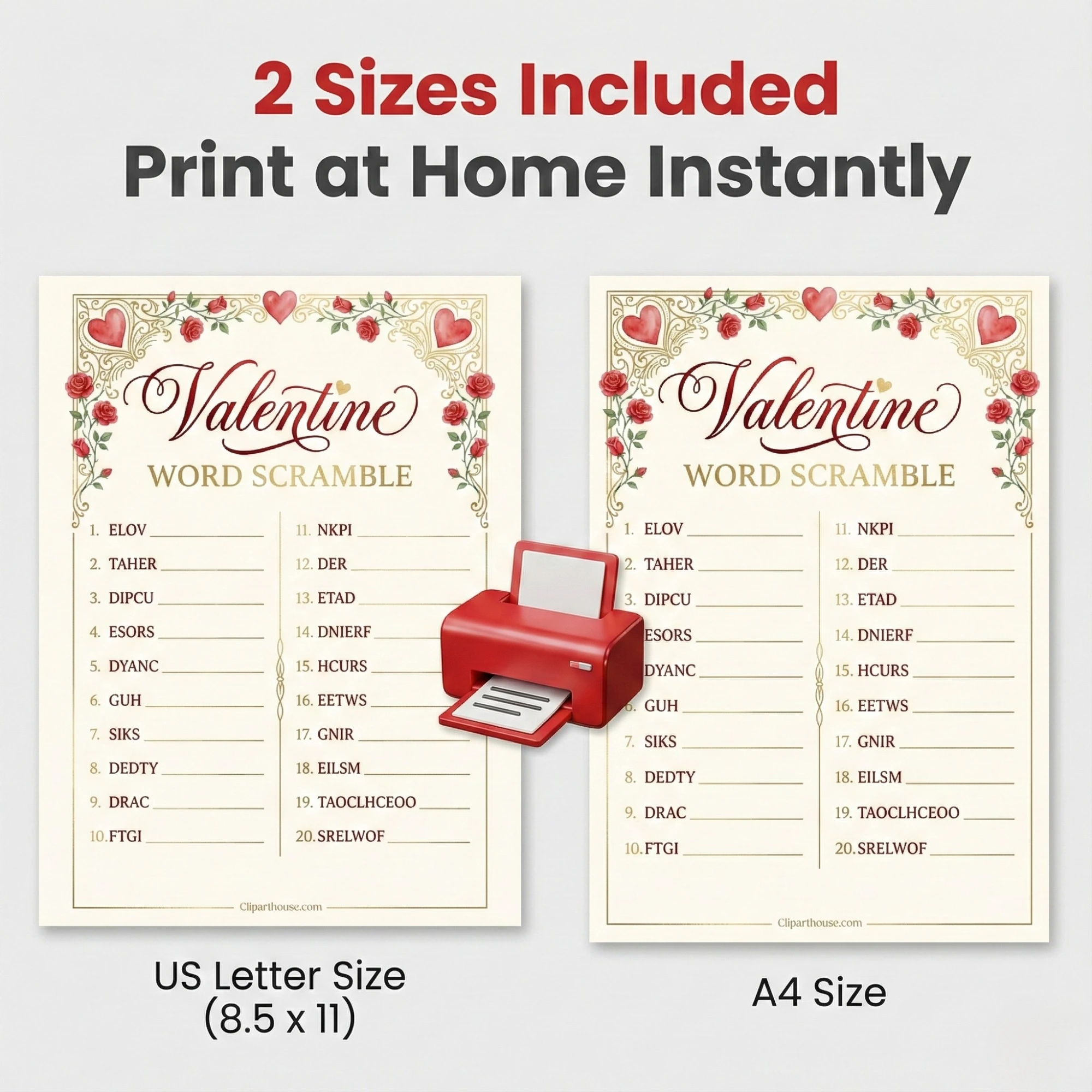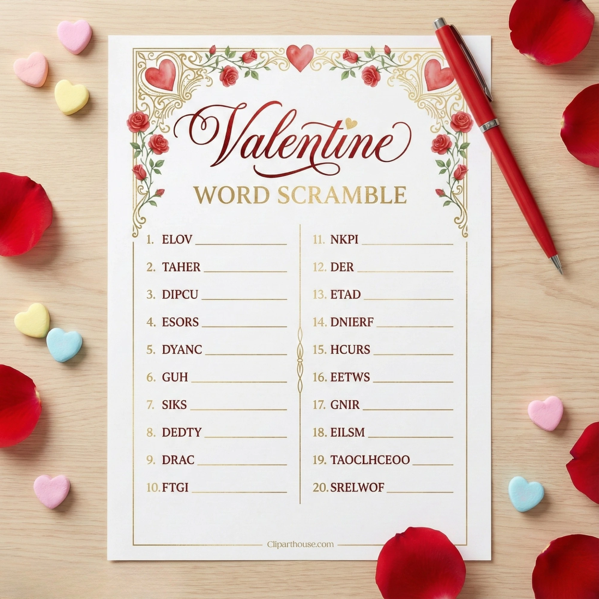 • 1 x Valentine Word Scramble Game Sheet.